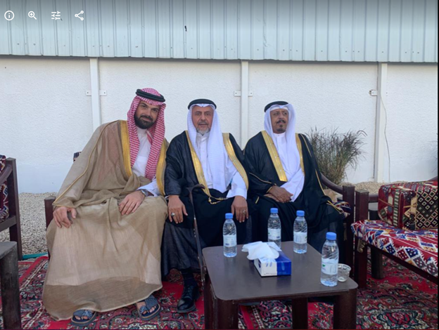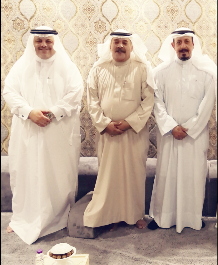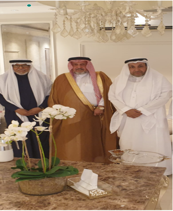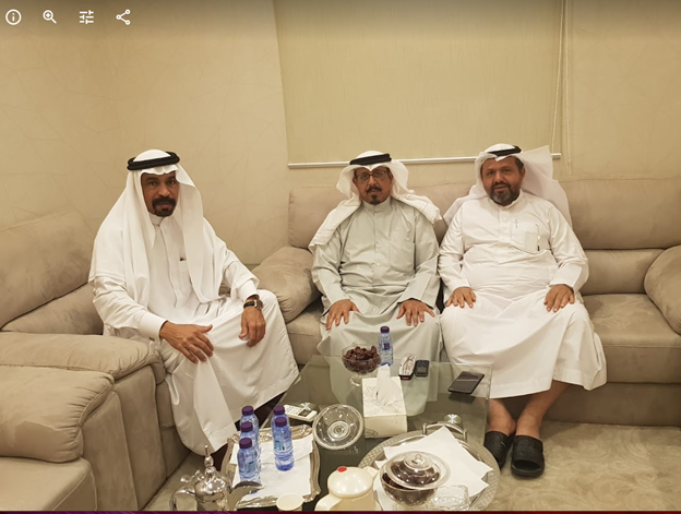 في منزل الشريف الدكتور انس الكتبي الحسني [ نسّابة المدينة الكنورة] من اليمين الشريف أنس الكتبي ثم ال\دكتور فلاح الورد الحسيني ثم العم حسين الحياري الحسيني من وجهاء المدينة المنورة