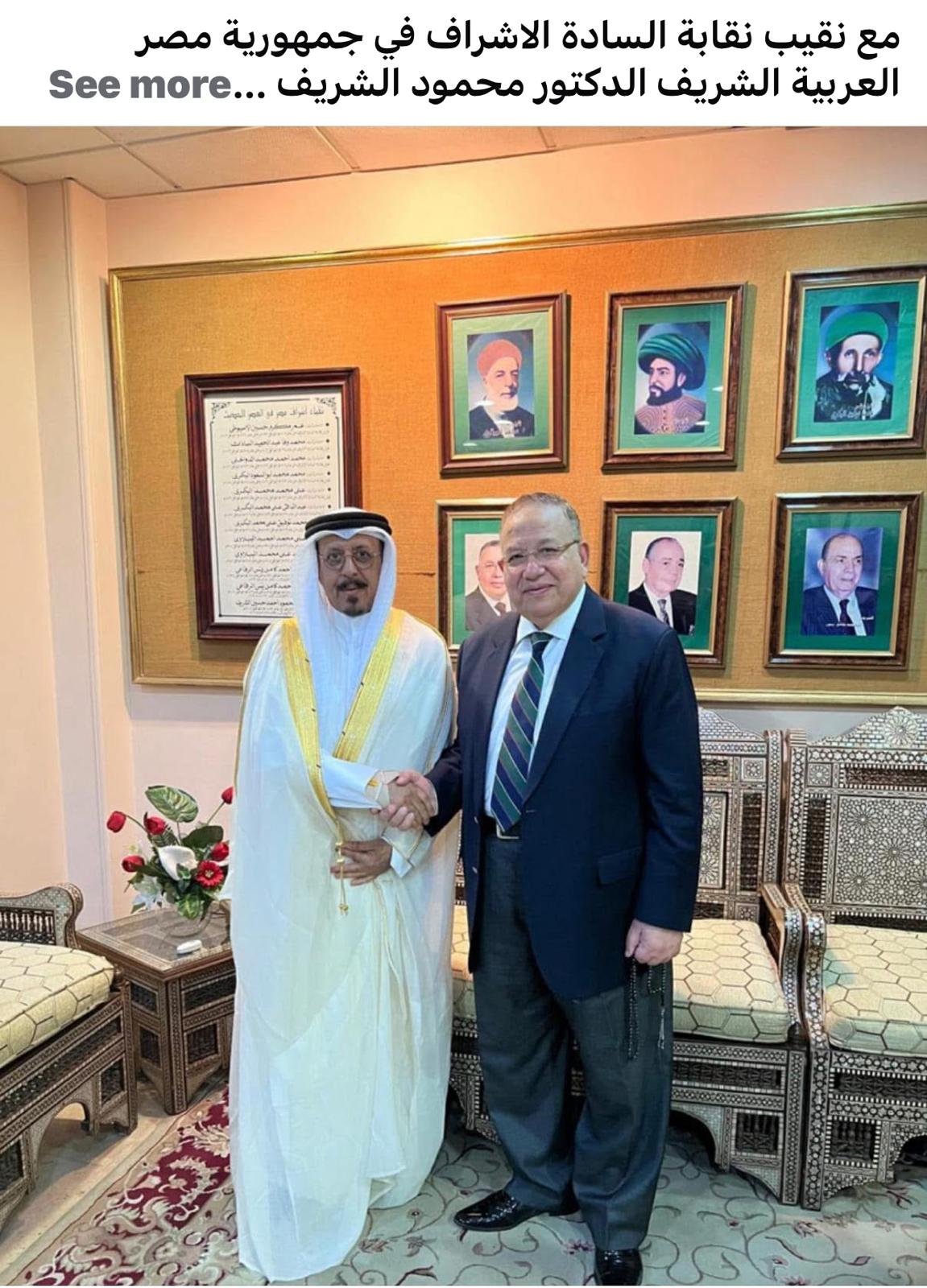 لقاء الدكتور يوسف الماص الحسيني مع نقيب نقابة السادة الأشراف آل البيت في القاهرة الشريف الدكتور محمود الشريف