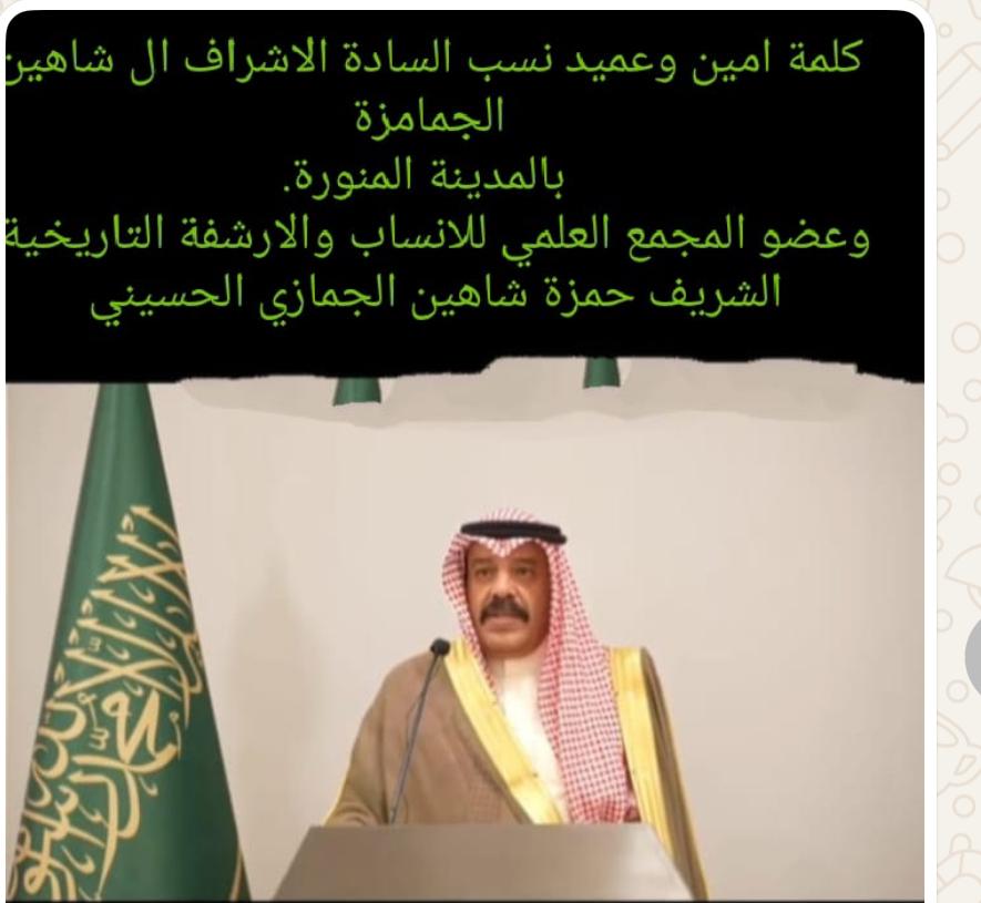 الشريف حمزة محمد شاهين الجمازي الحسيني - عضو اللجنة العلمية لتحقيق وتوثيق الأنساب