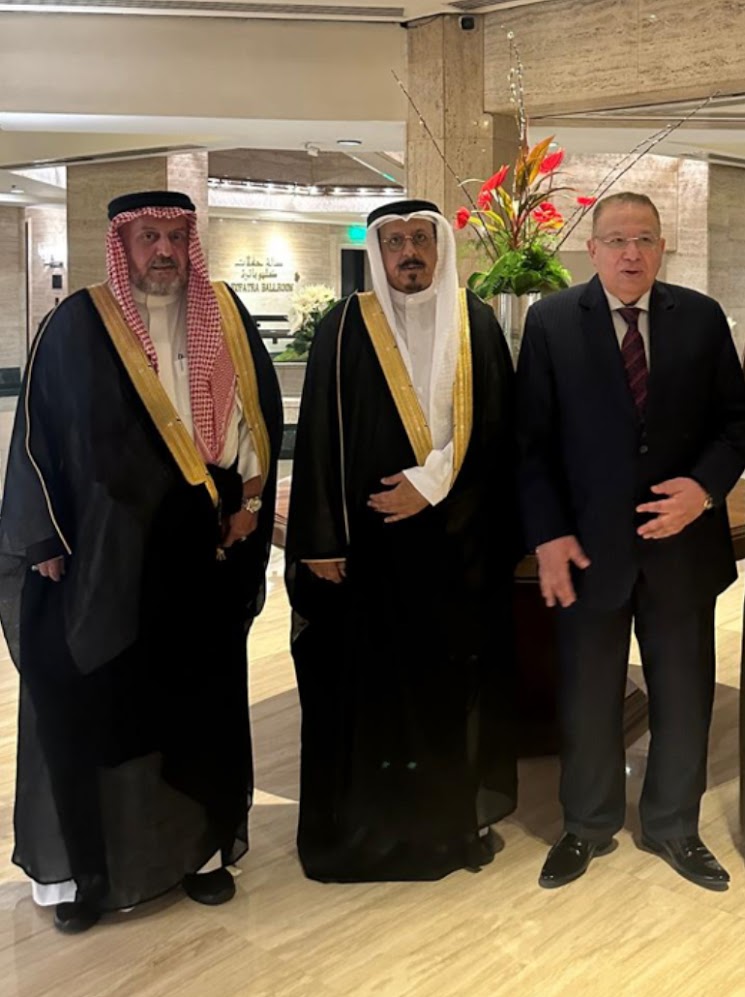 الشيخ محمد باقر السهيل أمير قبيلة بني تميم وابنه خميس بمرافقة رئيس المجمع الدكتور فلاح الورد الحسيني ggg